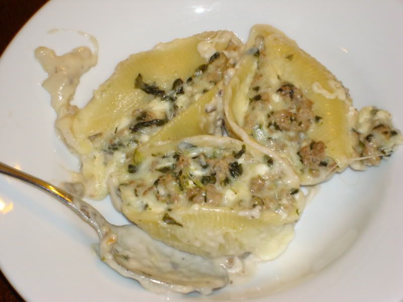 20 jumbo pasta shells, cooked and drained